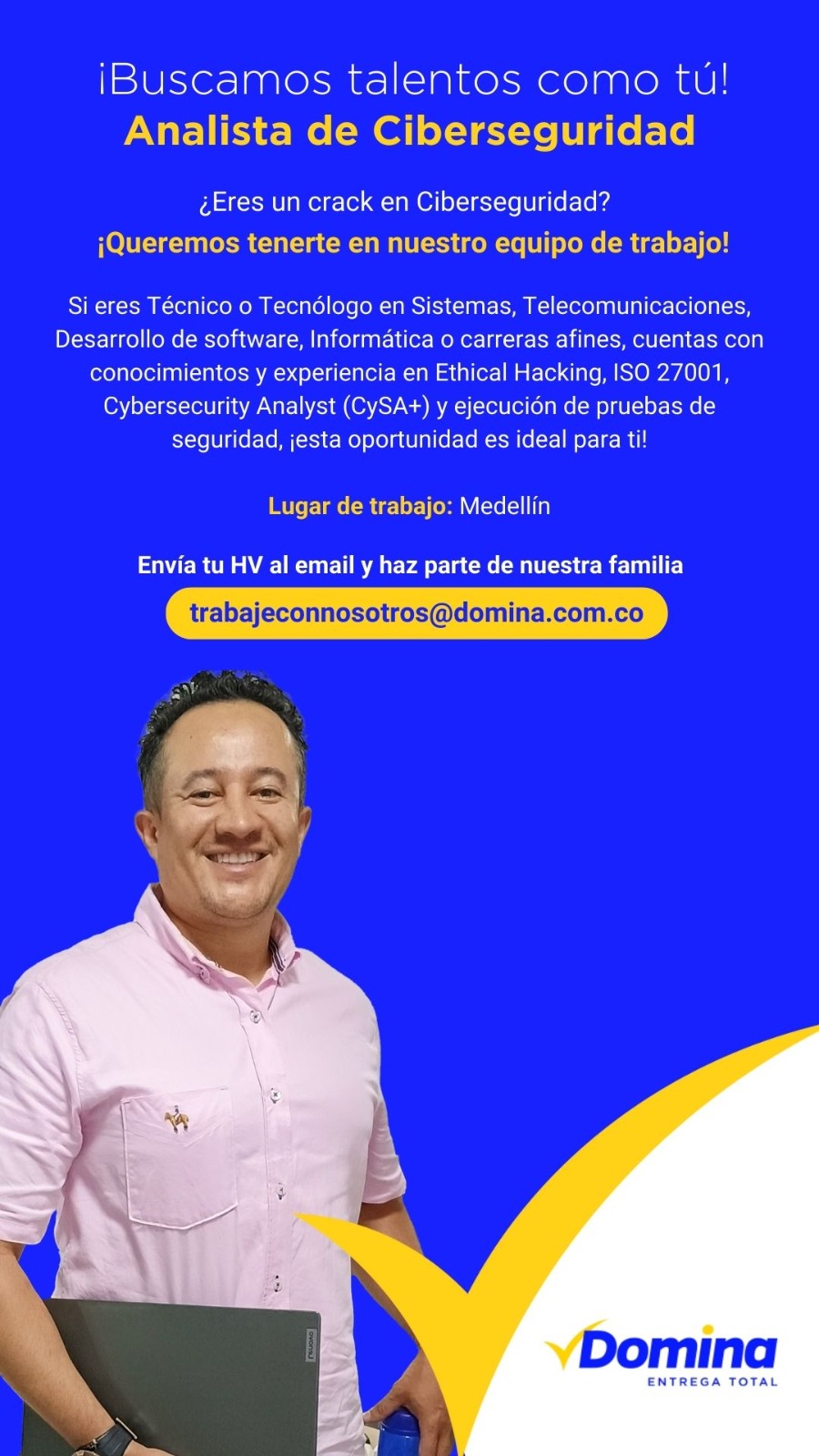 En Domina, llevamos más de 35 años acompañando la transformación de empresas en Colombia con soluciones logísticas, BPO y digitales. Hoy queremos sumar a nuestro equipo a personas con compromiso, actitud y experiencia que quieran crecer con nosotros desde el rol de Analista Ciberseguridad.